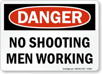 Post this No Shooting Men Working OSHA Danger Sign in shooting arenas and keep workers out of harm's way.