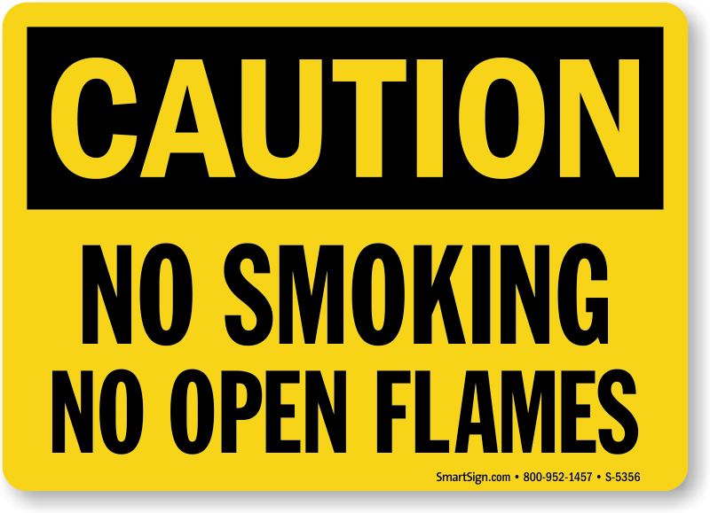 Post this caution sign to mark areas where smoking may be hazardous to life and property. Bold black legend on a contrasting background makes your message visible even from a distance. Ideal for installation indoors or outside.