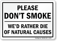 It never hurts to put things in perspective. This funny non-smoking sign may make viewers more receptive to a reminder about the serious health hazards of smoking.