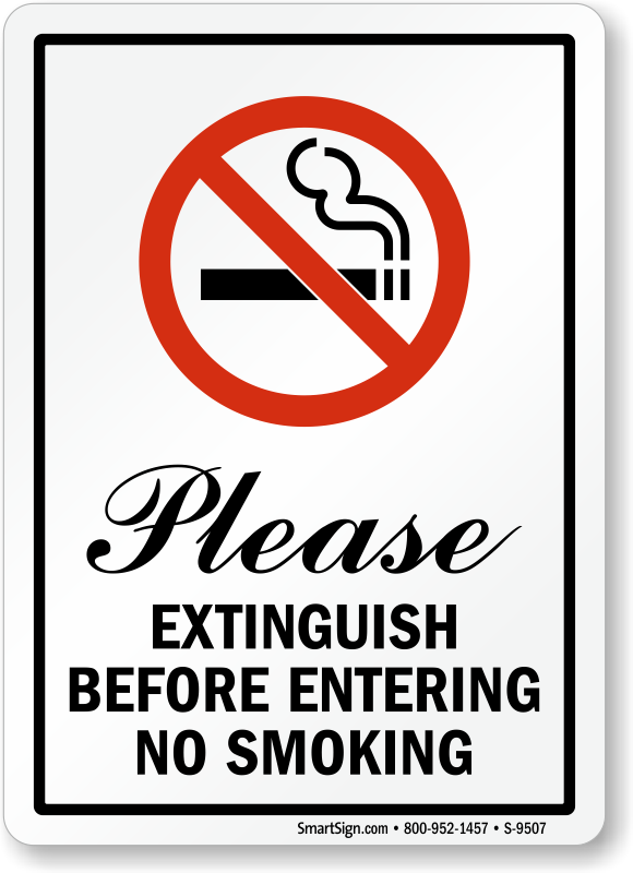Remind visitors to your building to Please Extinguish before entering. This No Smoking sign is polite and effective.