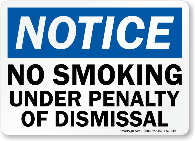 OSHA Notice Sign: No Smoking - Under Penalty Of Dismissal S-9539