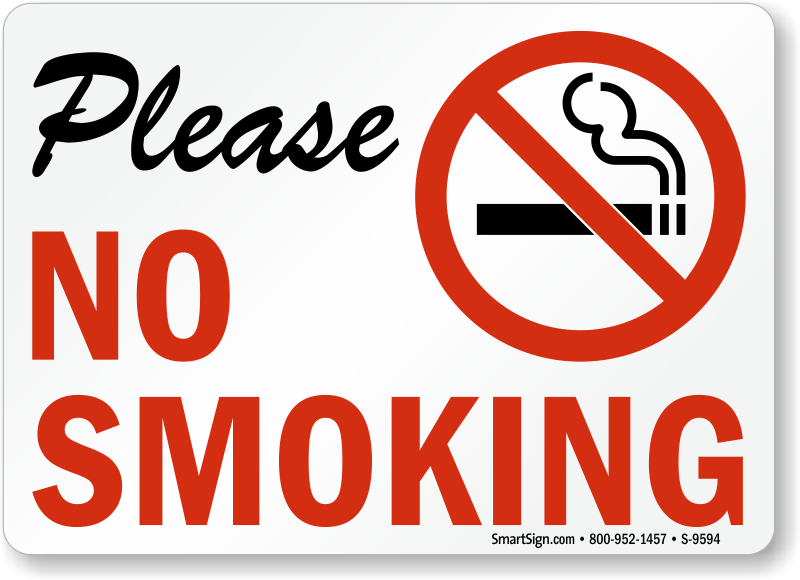 Smoking Prohibited Sign: Please No Smoking (with symbol) S-9594