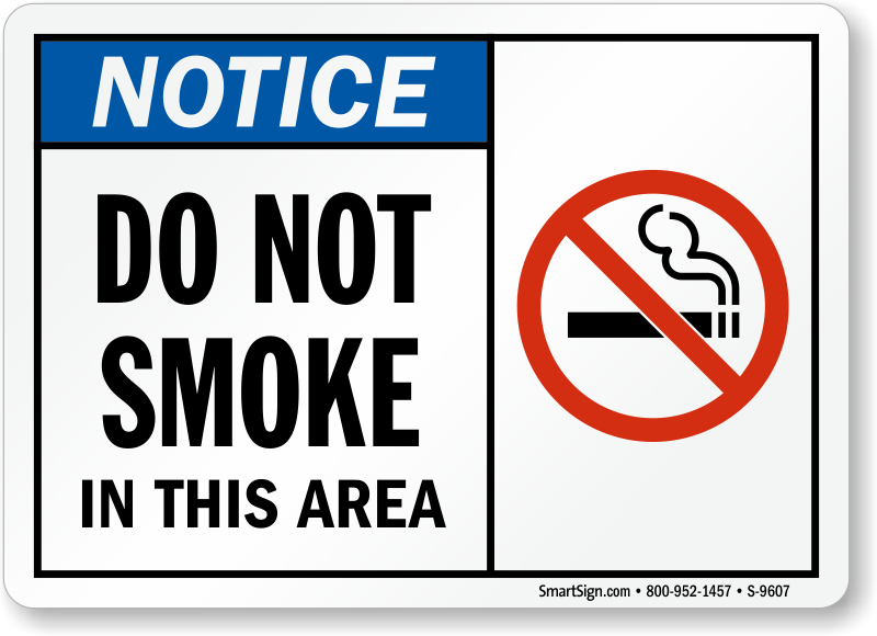 Use this "do not smoke notice sign" to prevent smoking in areas where it may cause risk to life or property.