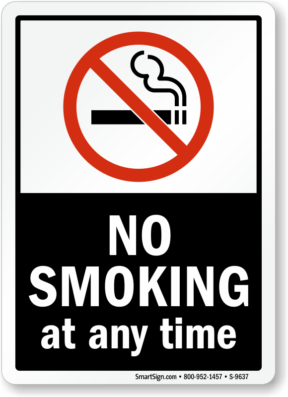 Smoking Prohibited Sign: No Smoking At Any Time (with symbol) - black vertical S-9637