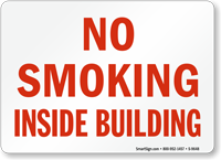 Smoking Prohibited Sign: No Smoking Inside Building (red text) S-9648
