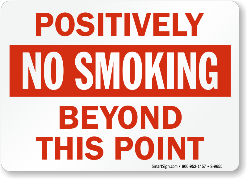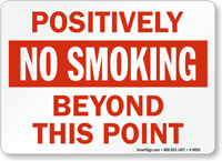 Positively No Smoking Beyond This Point Sign: Positively No Smoking Beyond This Point (red text) S-9655