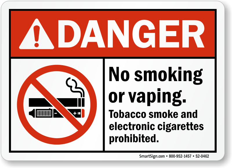 ANSI Danger Sign: No Smoking Or Vaping - Tobacco Smoke And Electronic Cigarettes Prohibited S2-0462