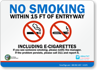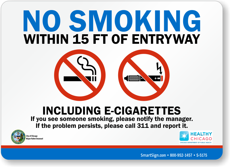 Install this No Smoking Sign to fall in line with the Chicago Clean Indoor Air Act that was updated in 2014 to include e-cigarettes in the law.
