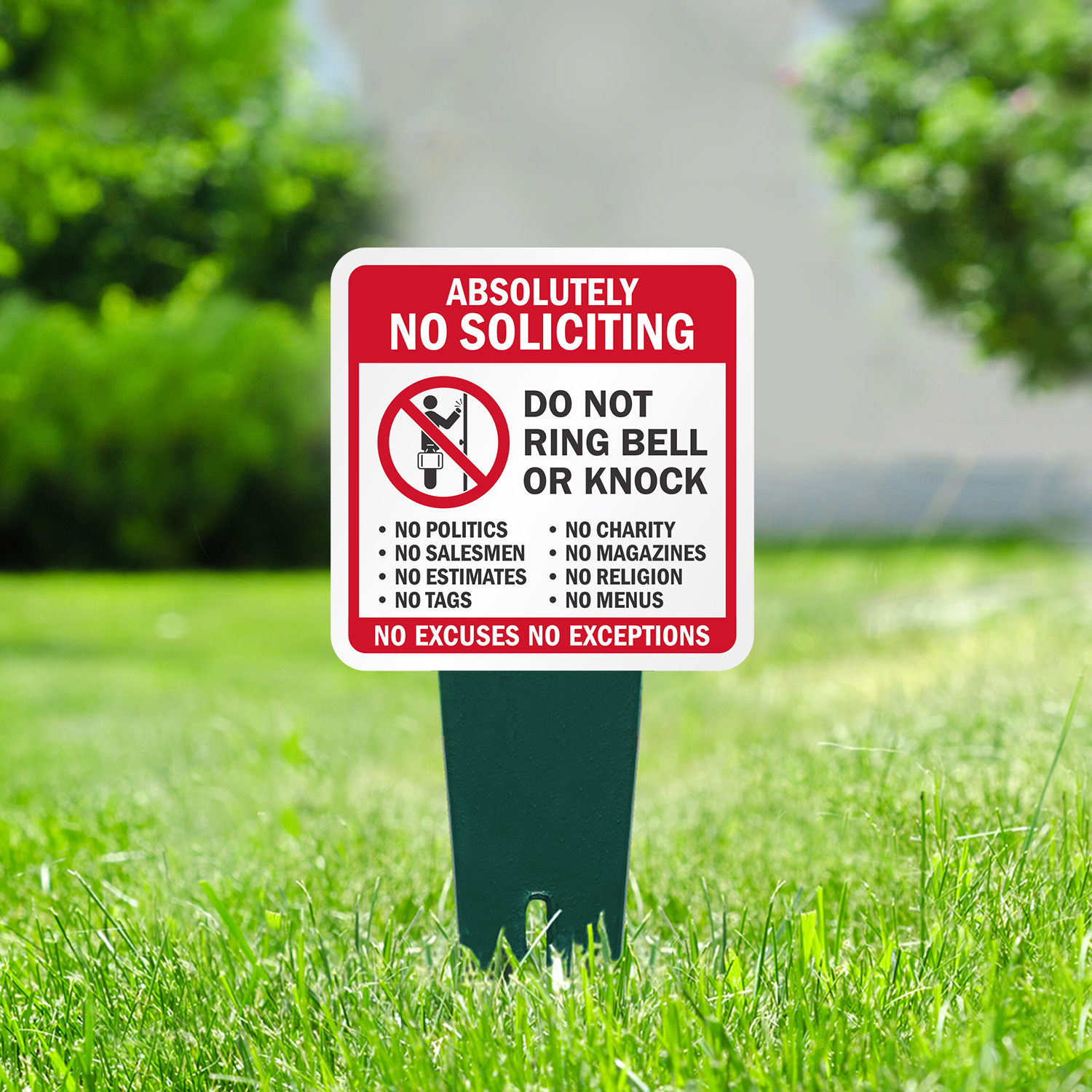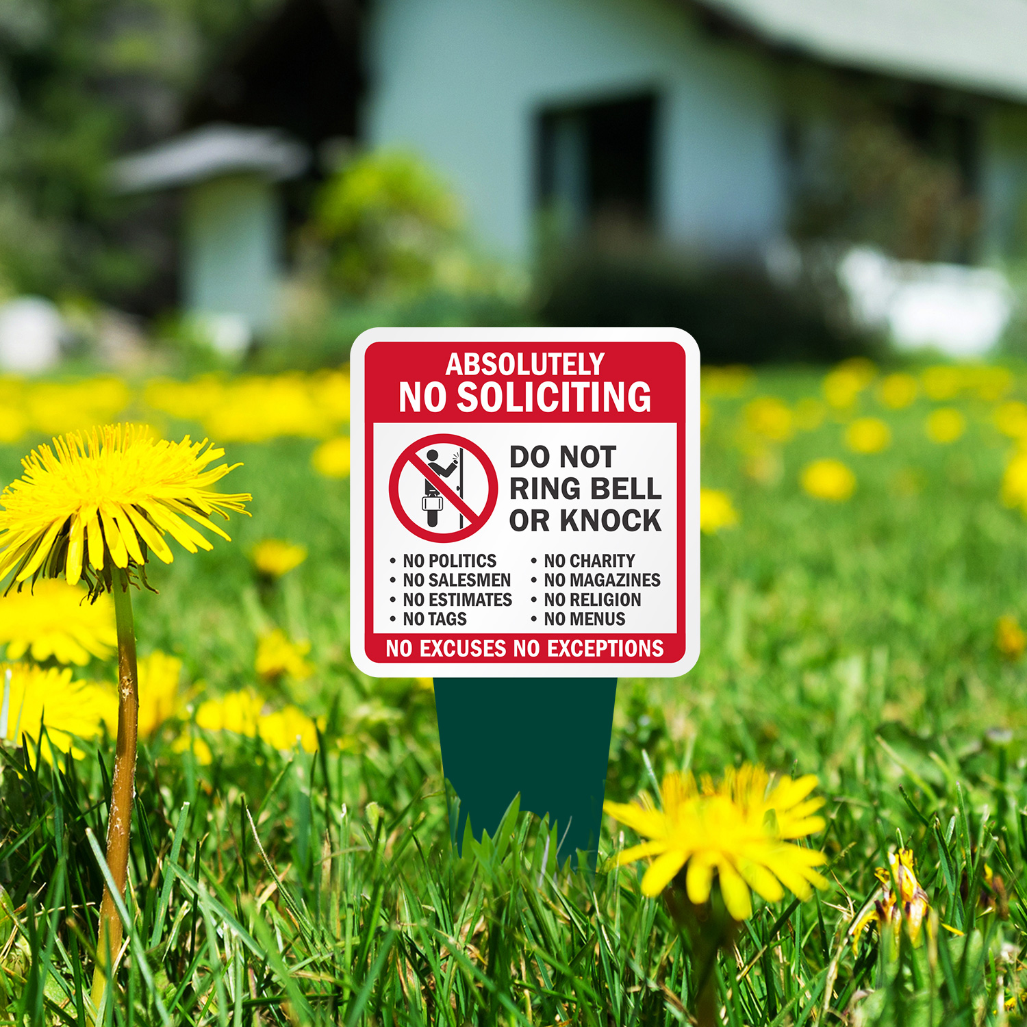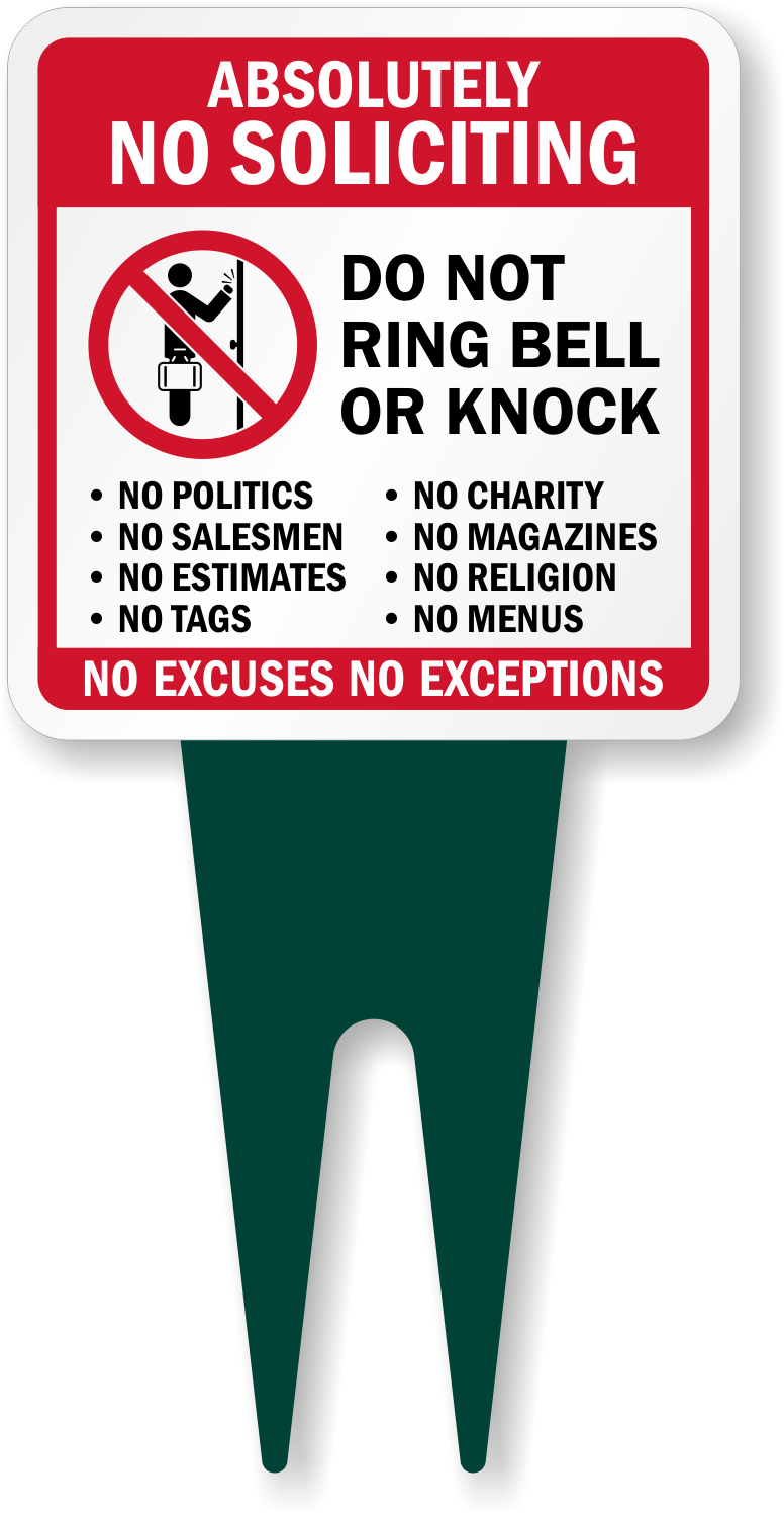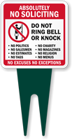 Square Yard Stake Sign: Absolutely No Soliciting - Do Not Ring Bell Or Knock, No Excuses No Exceptions K2-6930