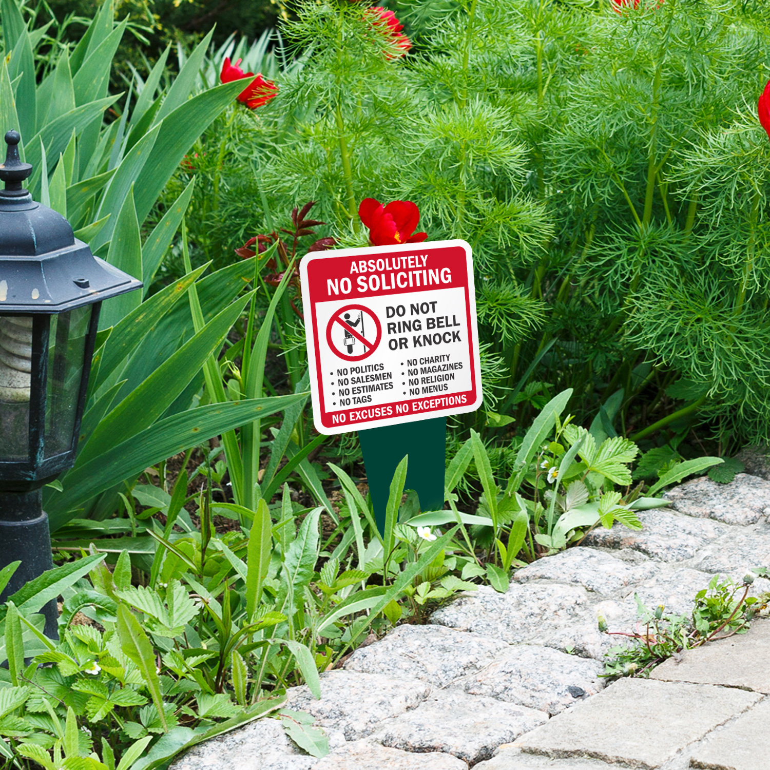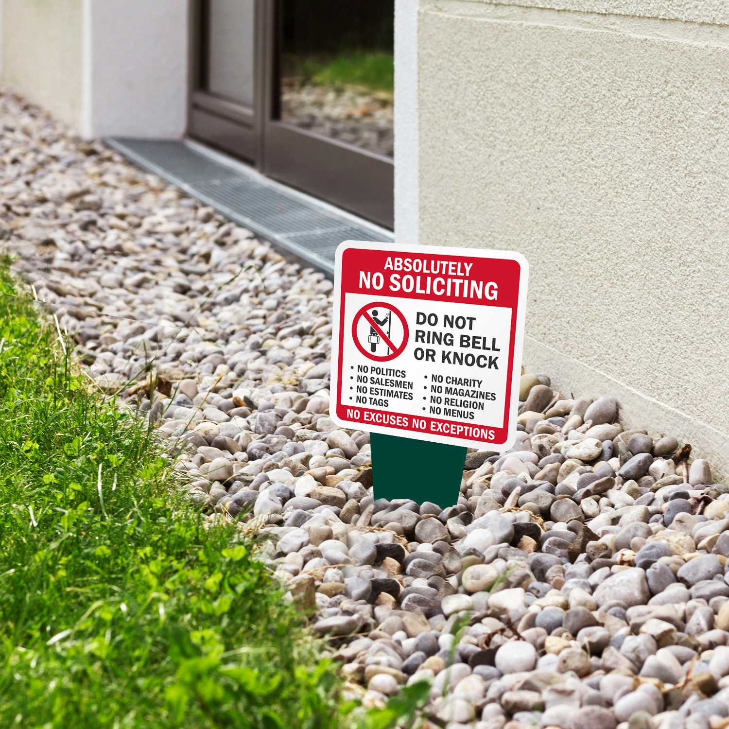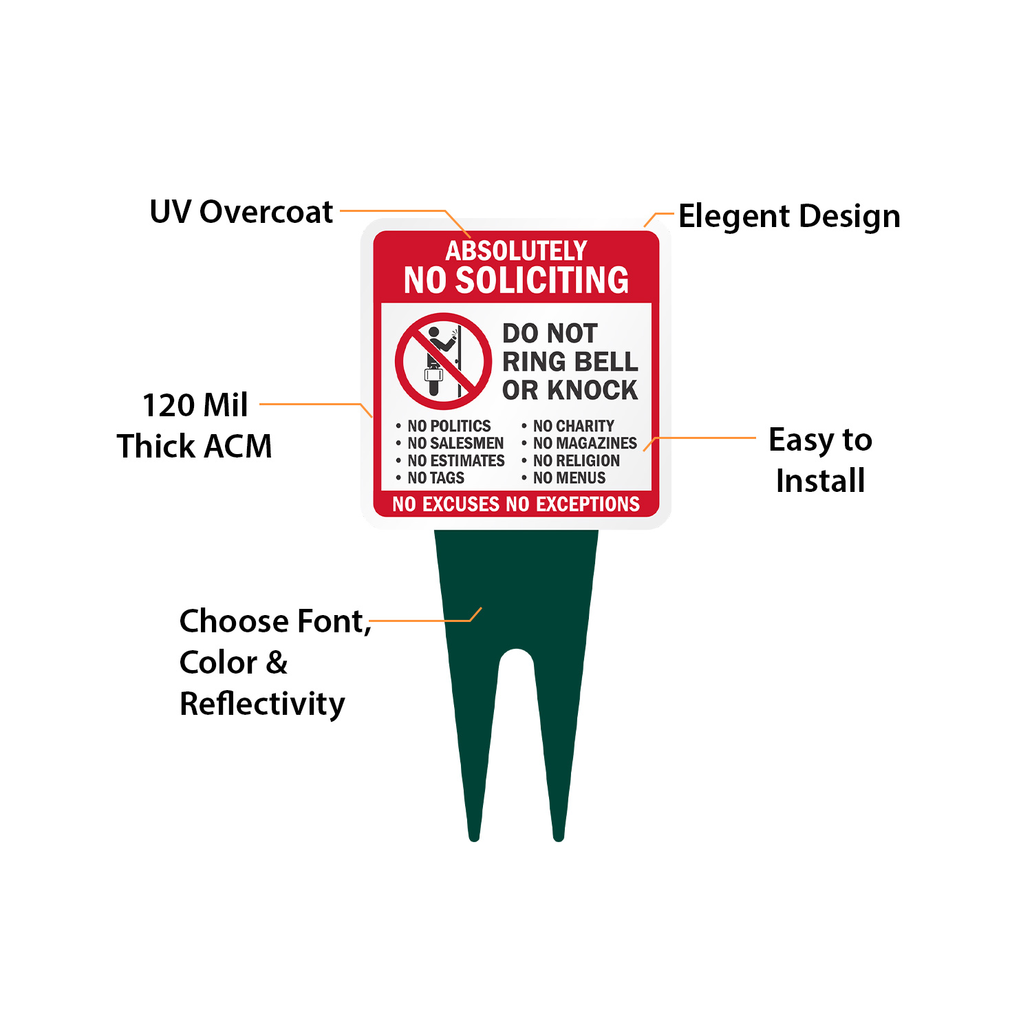 Square Yard Stake Sign: Absolutely No Soliciting - Do Not Ring Bell Or Knock, No Excuses No Exceptions K2-6930
