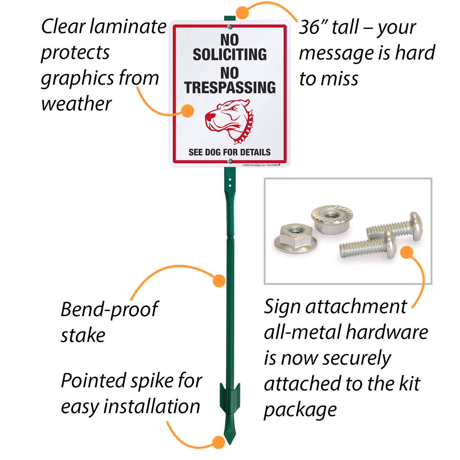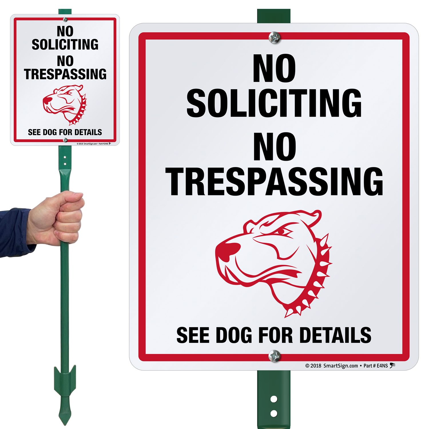 Dog Warning LawnBoss® Sign & Stake Kit: No Soliciting, No Trespassing, See Dog For Details K2-5220