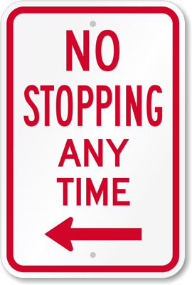 No Stopping Sign: No Stopping Any Time (with Left Arrow) K-6133 Learn More...