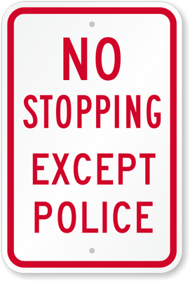 No Stopping Sign: NO STOPPING EXCEPT POLICE K-5185 Learn More...