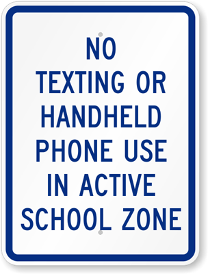 Cell phone Sign: No texting Or Handheld Phone Use In Active School Zone K-6784