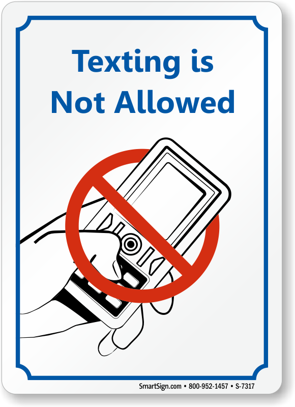 This graphic Texting is Not Allowed Sign will let everyone know in the classroom, workplace, security area or any other location that texting is not allowed. Texting can be rude, distracting and unsafe so make sure everyone knows when it is not allowed.