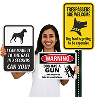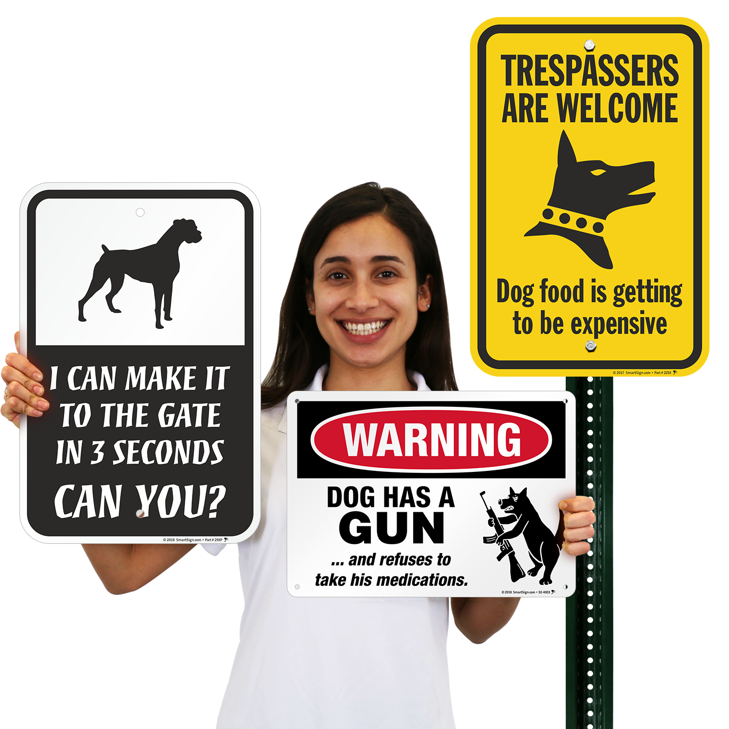 Funny Beware Of Dog Sign: Warning - Dog Has A Gun And Refuses To Take His Medications S2-4003