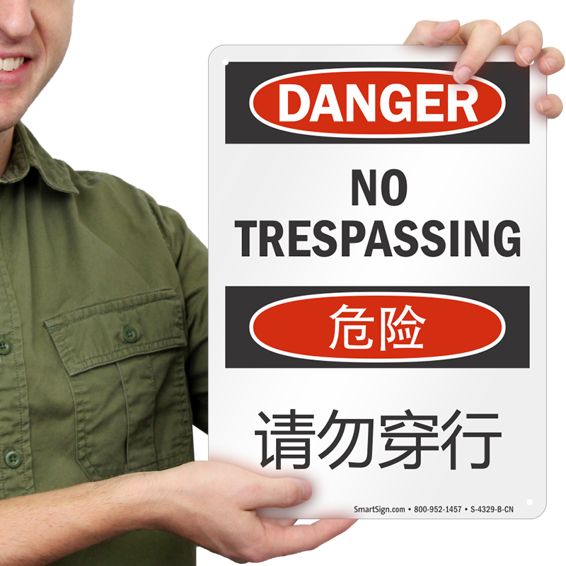 Restrict access to your land using a bilingual sign with enhanced usability. Deploy this No Trespassing Bilingual OSHA Danger sign with text in English and Chinese to reach out to a wider audience.