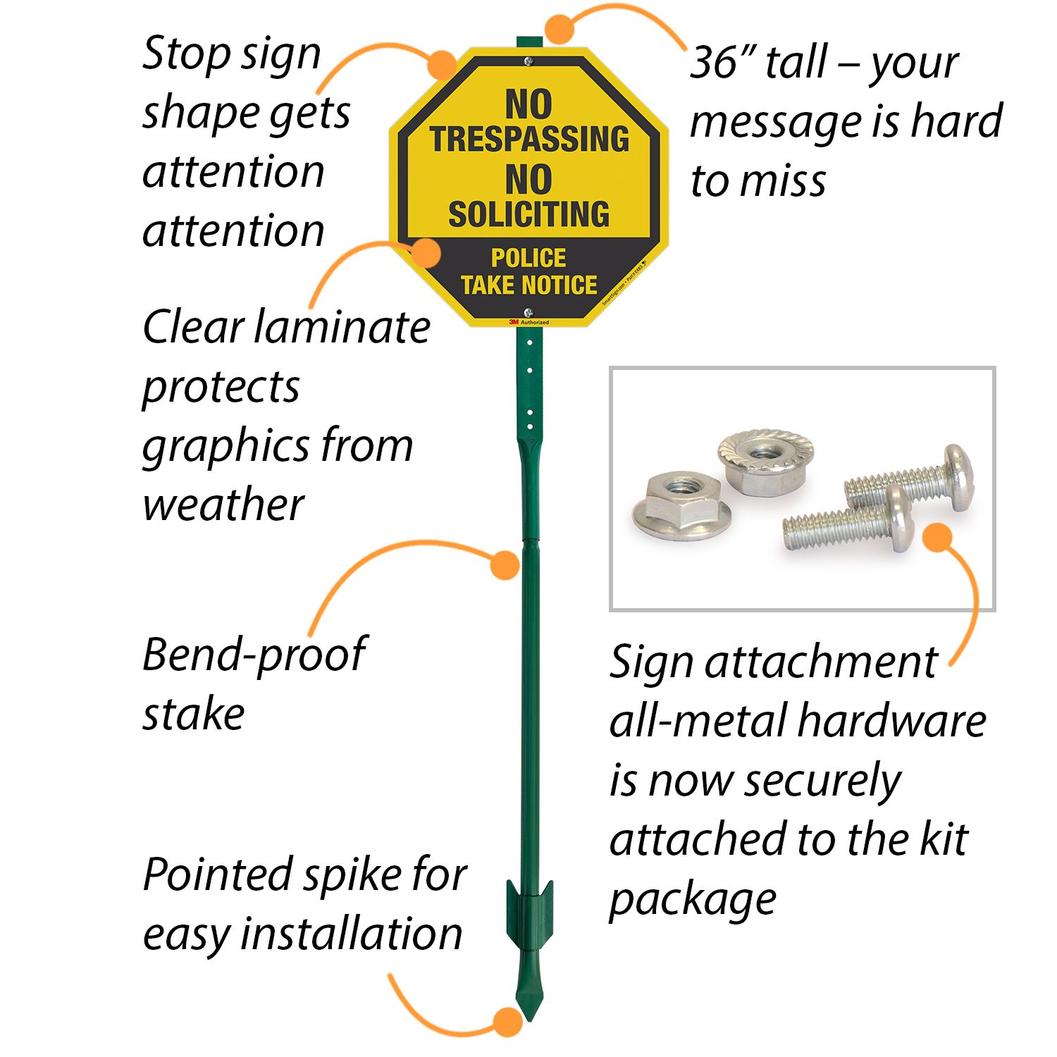 LawnBoss® Sign & Stake Kit: No Trespassing, No Soliciting, Police Take Notice K2-5215