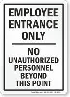 Employee Entrance Only Sign: No Unauthorized Personnel Beyond This Point S2-4255