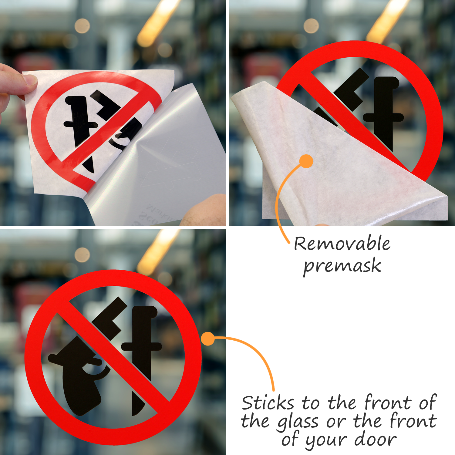 - Decal with back adhesive can be applied on the outside of window or glass door, while decal with front adhesive can be applied on the inside.