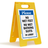 FloorBoss Standing Floor Sign encourages guests to maintain cleanliness and helps to keep the lobby clean, dry, and safe.