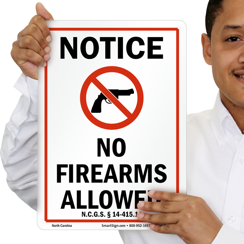 Use this Gun Control Law Sign to notify people about the no firearms policy on your property. The sign is pursuant to North Carolina code section N.C.G.S. § 14-415.11.