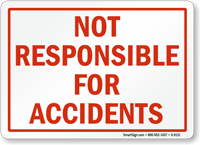 Not Responsible Sign: Not Responsible For Accidents S-9131