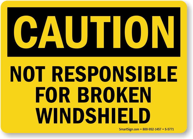 Caution drivers to take care of their vehicles and remove liability by posting this Not Responsible For Broken Windshield Sign.