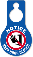 Pear Shaped Plastic Door Hang Tag: Notice Keep Door Closed (with Stop Hand Symbol) TG-1456