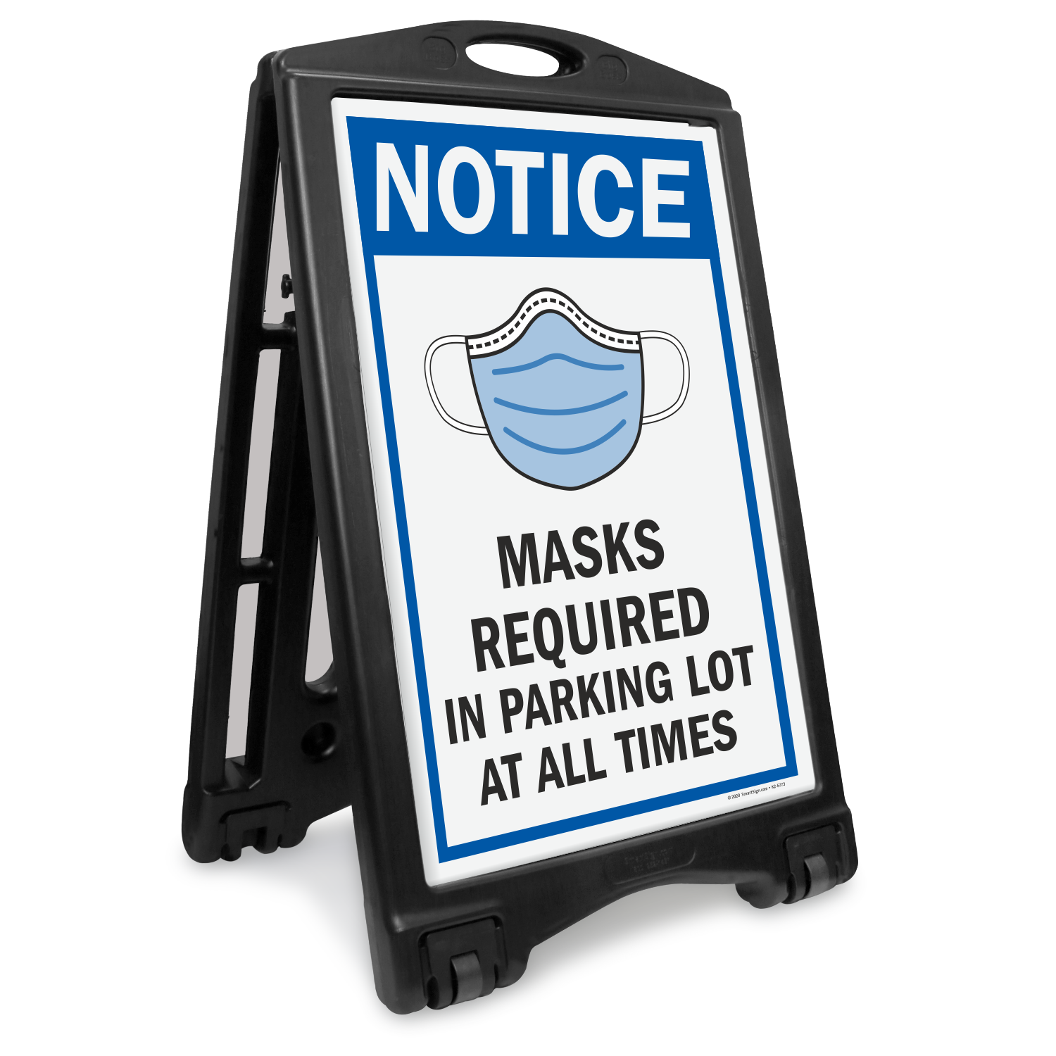 Portable Sign and Base: NOTICE: Masks Required in Parking Lot at All Times