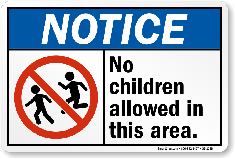 Unattended Children Sign: Notice - No Children Allowed In This Area. S2-2288