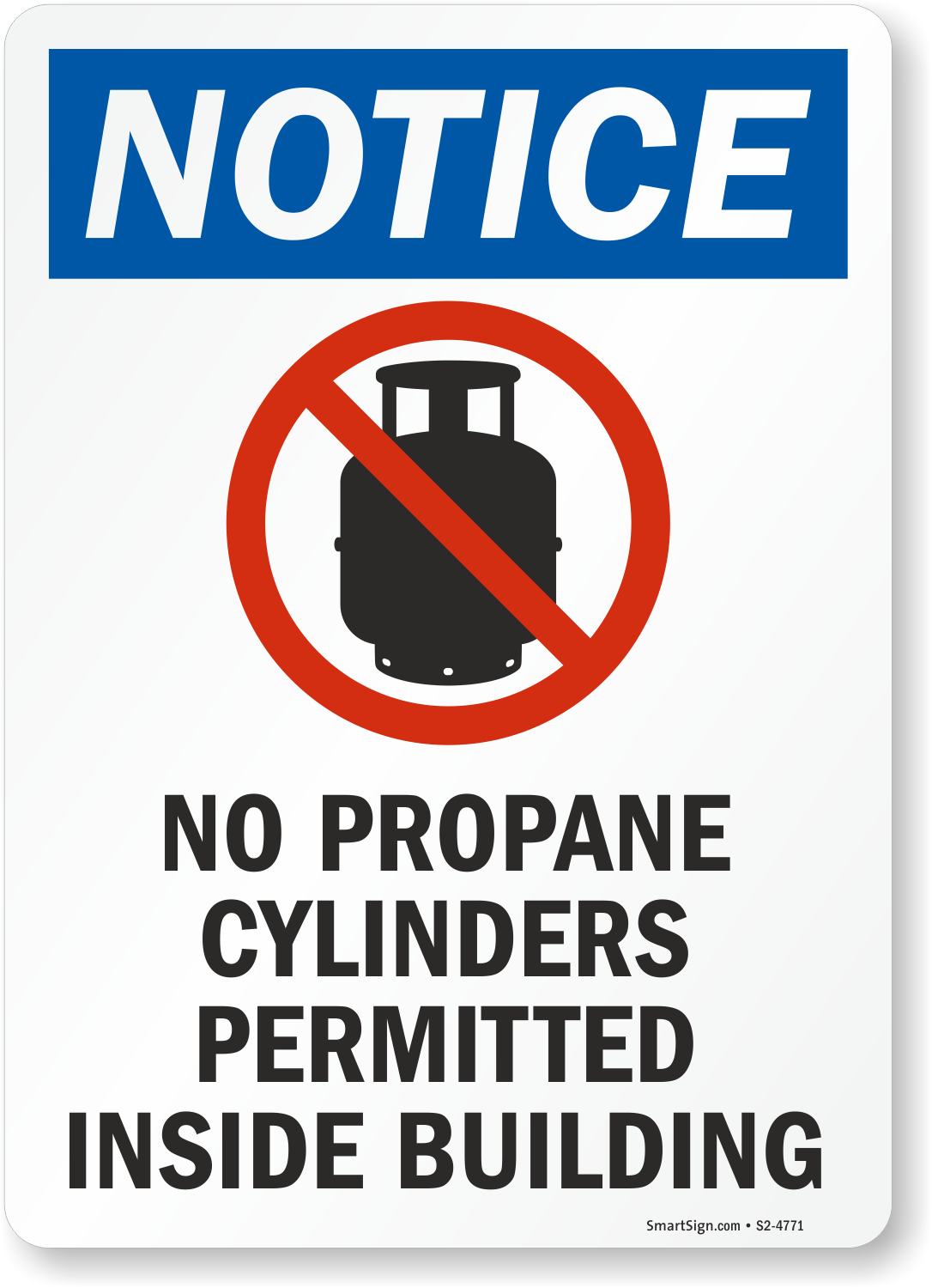 OSHA Notice Sign: Notice: No Propane Cylinders Permitted Inside Building S2-4771