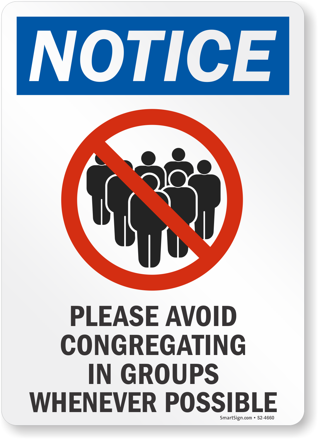 Social Distancing Sign: Notice - Please Avoid Congregating In Groups Whenever Possible S2-4660