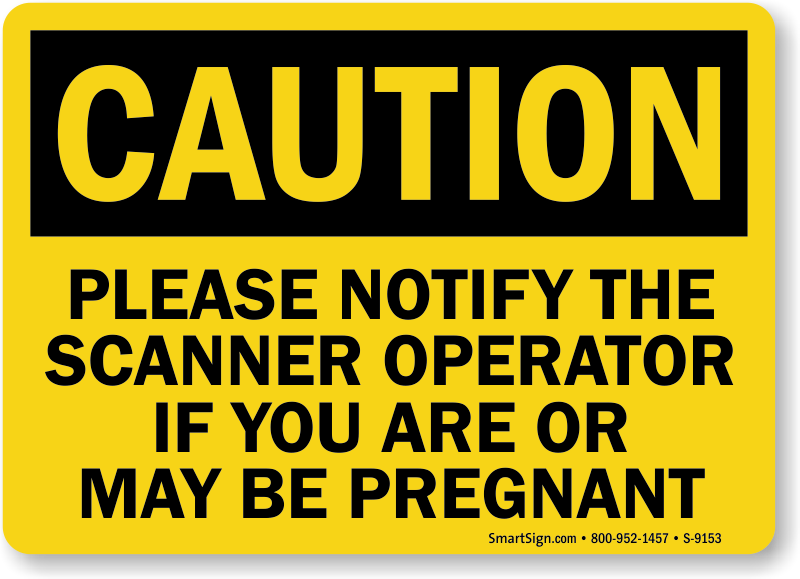 OSHA Caution Sign asks expectant women to notify scanner operator of their pregnancy status. A sign can save lives.