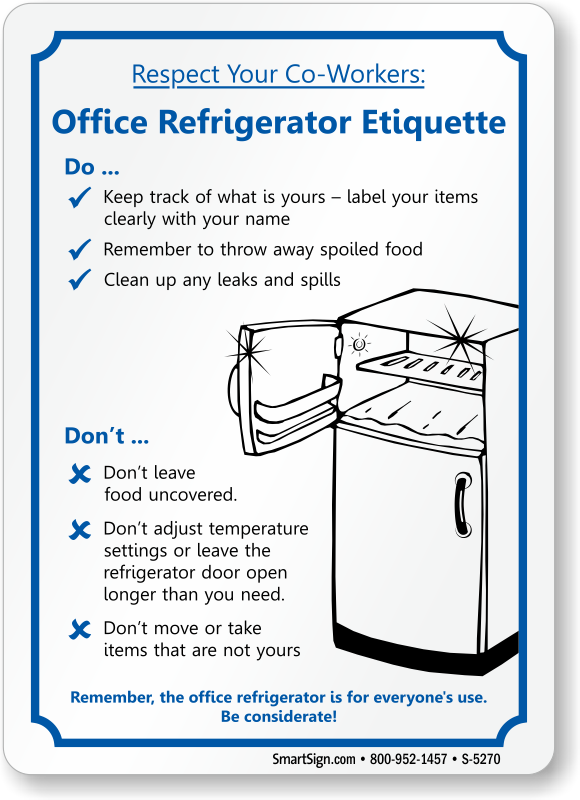 Fridge Cleaning Sign: Office Refrigerator Etiquette S-5270