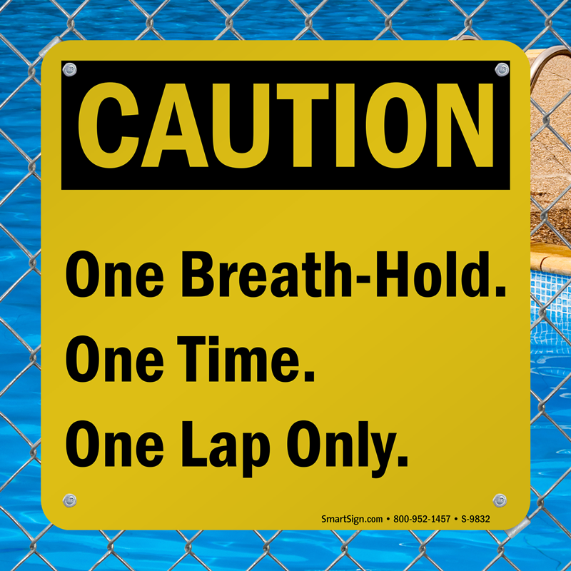 Caution Pool Sign: One Breath-Hold, One Time, One Lap Only S-9832 Learn More...