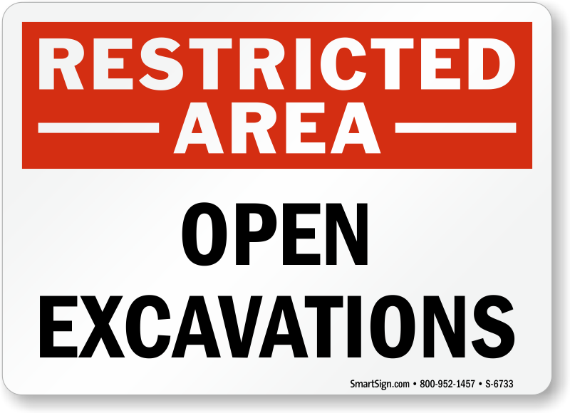 Install this high visibility sign near open excavations to inform everyone that the area is a restricted zone.