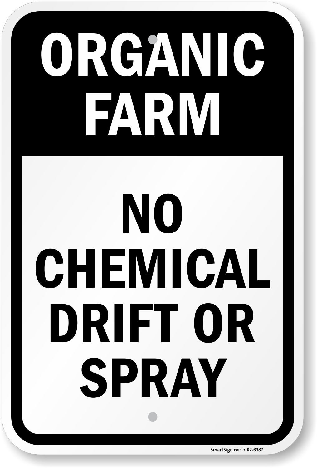 No Spray Sign: Organic Farm - No Chemical Drift Or Spray K2-6387