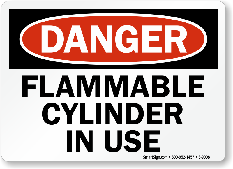 Reduce the hazards of flammable cylinders by using this danger sign to indicate areas and processes in which they are used.