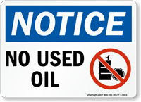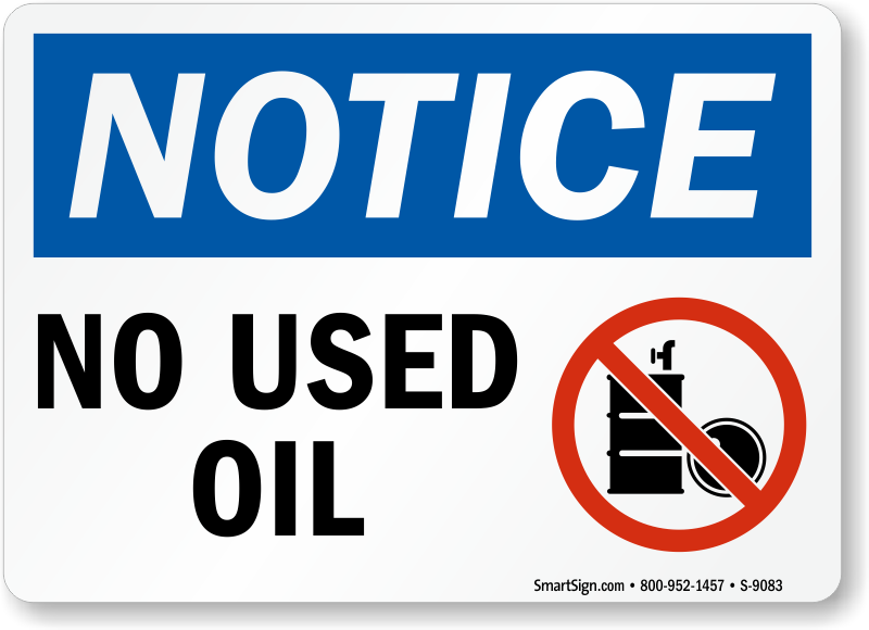 Posting this noticed sign will clearly indicate that used oil is not permitted in the area.