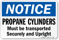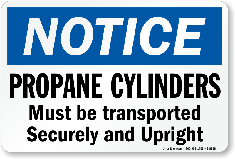 Transportation is an aspect of manufacturing that often becomes rushed, raising the risk of improper handling. Post this sign where propane is often moved, notifying workers that for their own safety, the cylinders must be secure and upright.