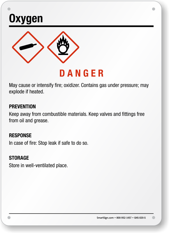 Alert employees to potential Oxygen hazards by clearly identifying cylinders with this highly visible Oxygen GHS Sign.