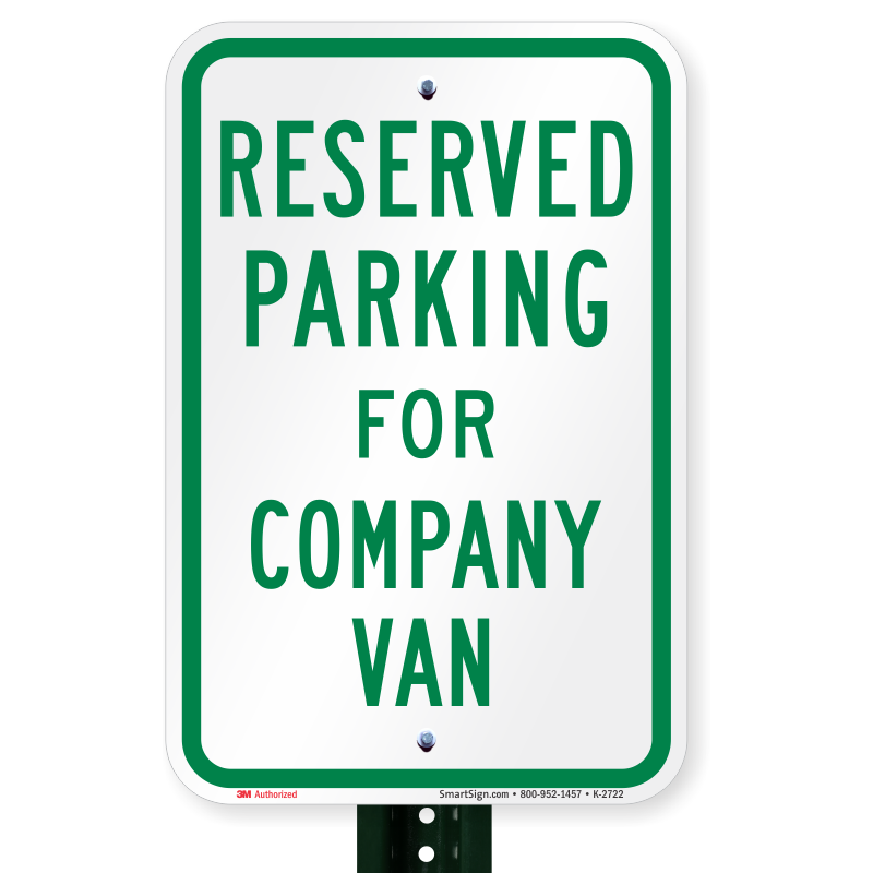 Parking Space Reserved Sign: Parking Reserved For Company Van Learn More...