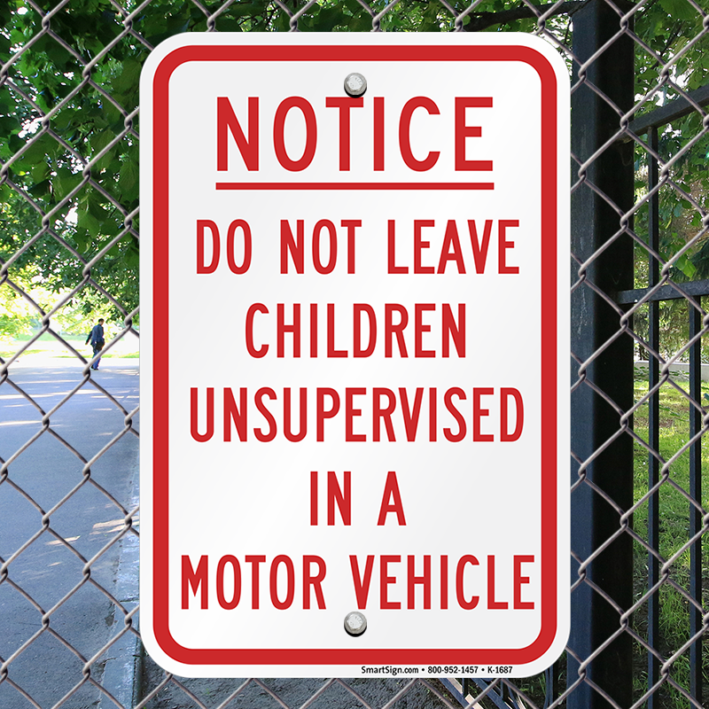 No Parking Sign: Notice Do Not Leave Children Unsupervised In A Motor Vehicle K-1687 Learn More...