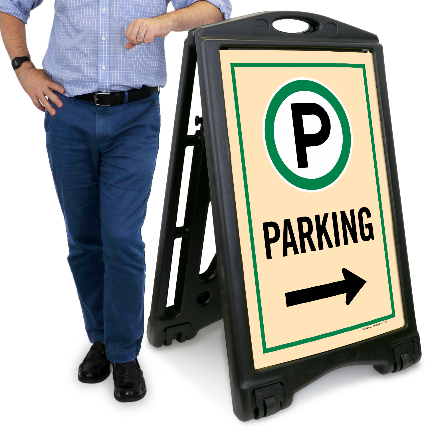 No lifting! Just grab the A-Frame Sidewalk Sign and roll! Sign is ideal for stores, hotels, or any other facility to display that parking is available.