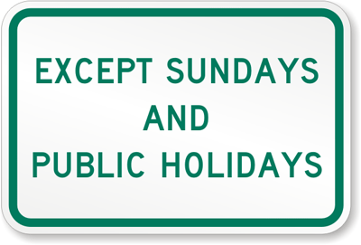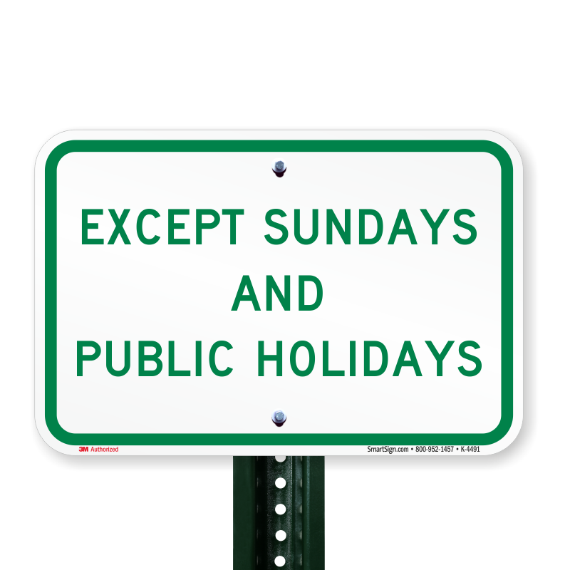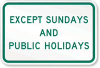 Parking Sign: Except Sundays And Holidays Supplementary Sign K-4491 Learn More...