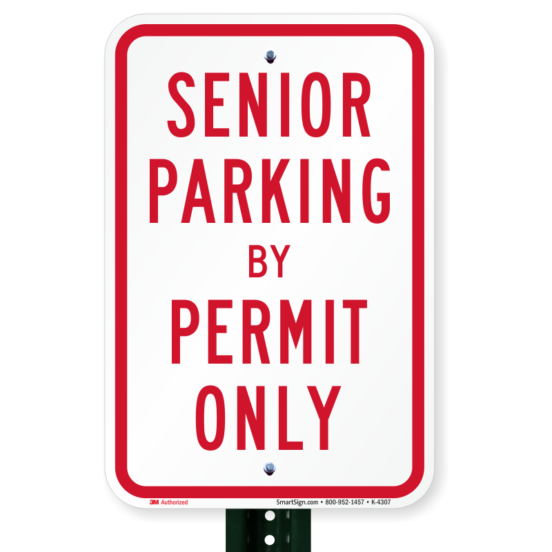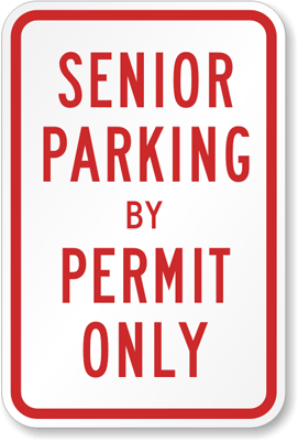 Senior Parking Sign: Senior Parking By Permit Only Sign K-4307 Learn More...