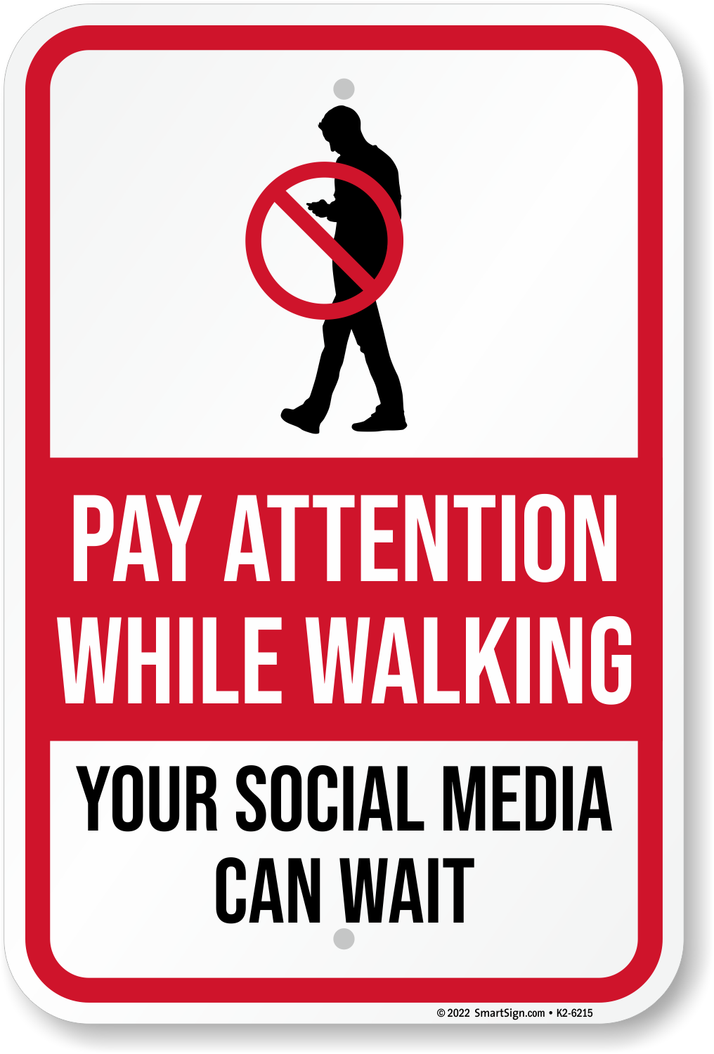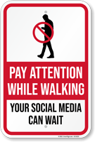 Walk Smart Sign: Pay Attention While Walking, Your Social Media Can Wait K2-6215