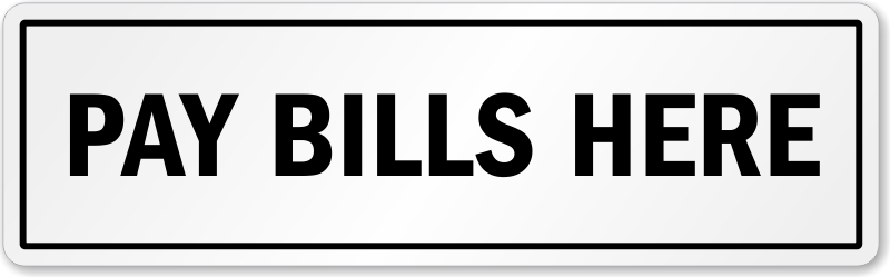 Use a 'Pay Bills Here' label for a walk-in bill payment center. Perfect for convenience and retail stores, banks, hospitals, and accounts department of a facility.