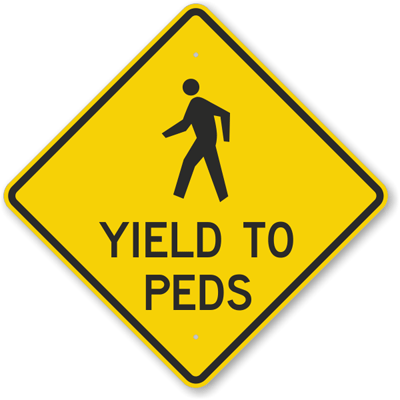 The sizes below are measured using the “sign as square” method. If you measured the Yields To Peds sign, instead, from the top to the bottom, this tip-to-tip dimension would be 40% larger.